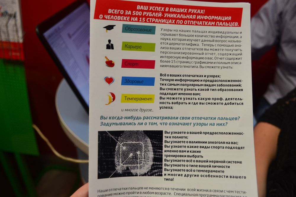 Еще одно чудо техники помогло познать себя. Наверняка Вы слышали, что узоры на подушечках пальцев индивидуальны и хранят очень интересную информацию о Вас) Сегодня тайное стало явным! Гости Арсенал+ узнали о себе много нового, получили отчет с полным описанием своего генотипа. Это очень интересно!