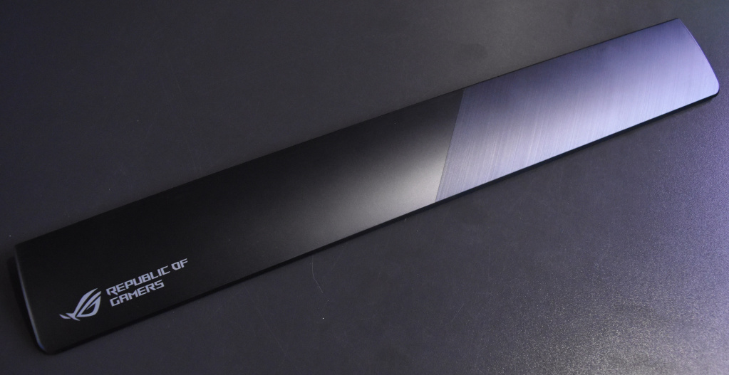 Одной из самых интересных особенностей RoG Strix Flare является акриловая светящаяся пластина, которая весьма удачно вписалась в дизайн устройства. В комплекте с клавиатурой поставляется две пластины. На одну уже нанесен логотип RoG «с завода» и она установлена в клавиатуру. Вторая – чистая пластина. На ней можно выгравировать всё, что душе угодно, к примеру, ник игрока, тем самым придав клавиатуре индивидуальности. Но навряд ли кто-то сможет в домашних условиях сделать это самостоятельно, поэтому здесь придется обратиться за помощью к специалистам.